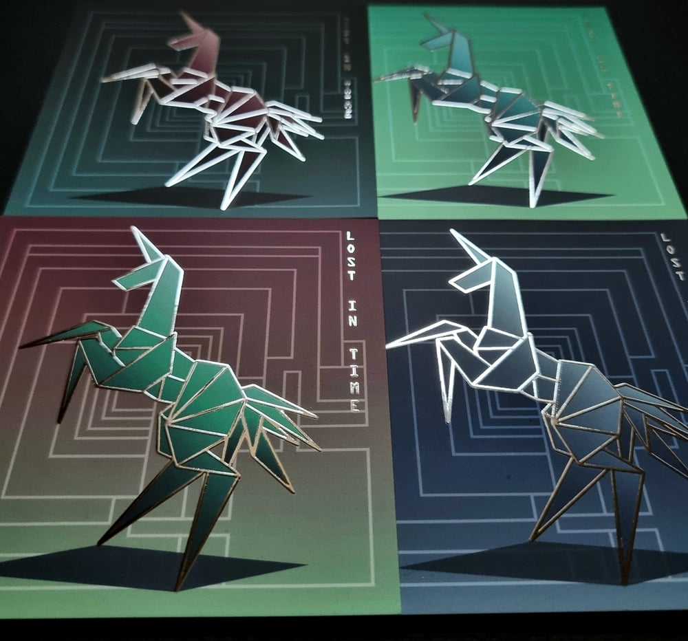 Matte colour and reflective silver foil print on 380gsm premium card stock.